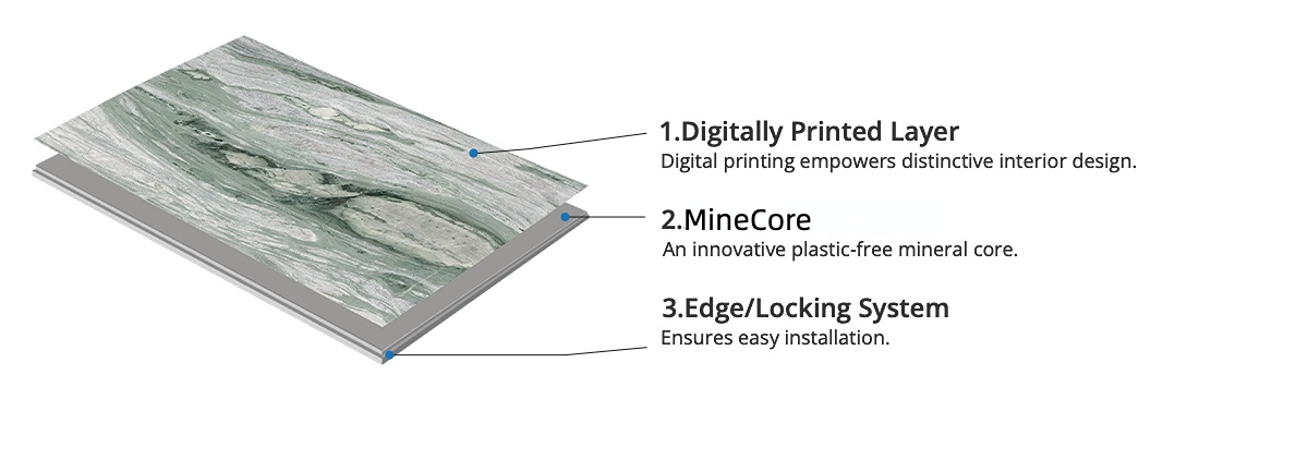 El panel de pared Minecore combina sostenibilidad, funcionalidad y estilo. Es ideal para propietarios y diseñadores que buscan una solución de pared de alta calidad que sea consciente del medio ambiente y visualmente impactante. Al elegir un panel de pared impermeable y sin plástico, no solo mejora su espacio sino que también contribuye a un futuro más verde.