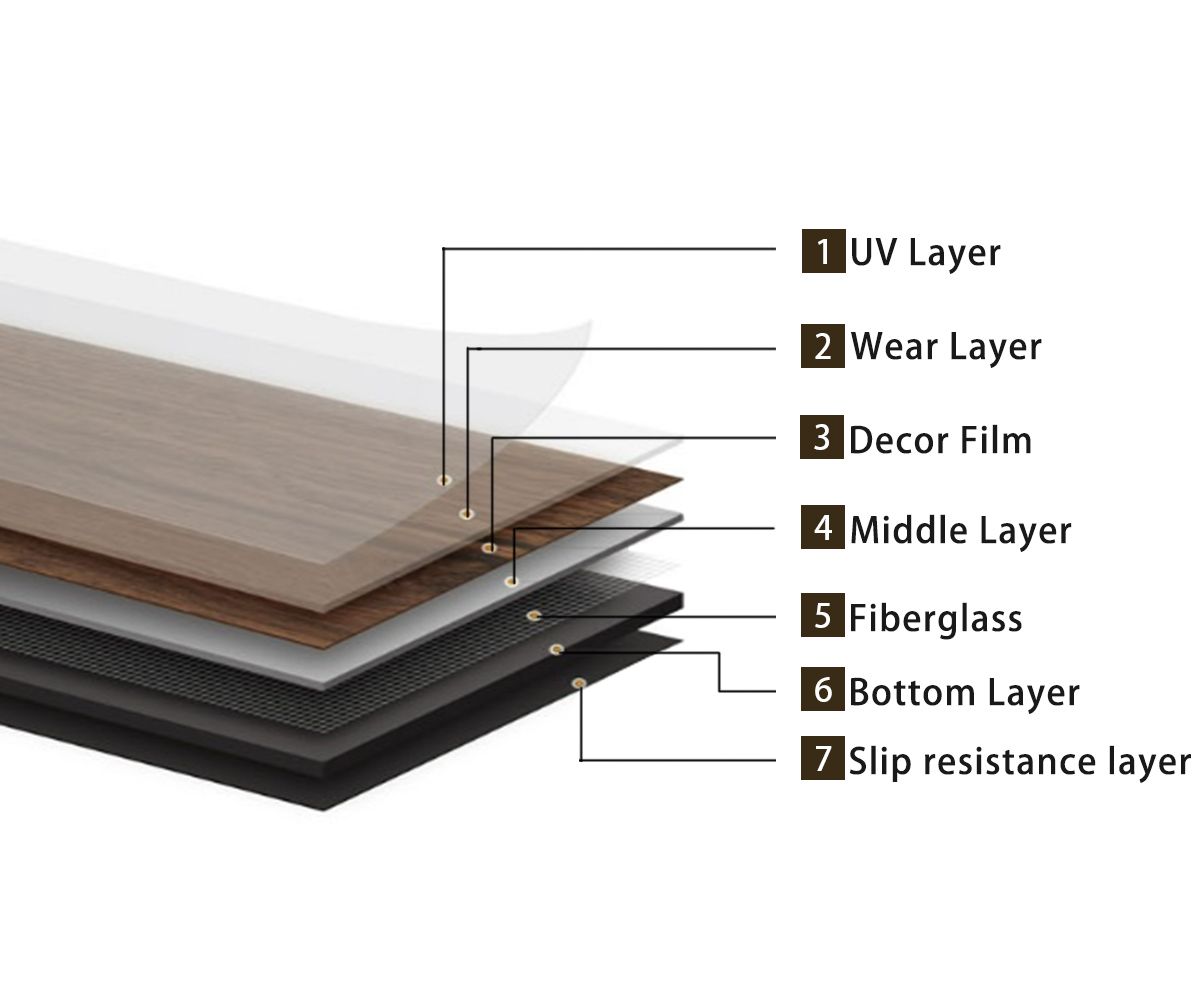 La textura de la superficie está diseñada para replicar la apariencia visual de la madera natural. Este suelo es adecuado para entornos residenciales y comerciales ligeros. Su diseño se centra en combinar facilidad de instalación con un mantenimiento sencillo.